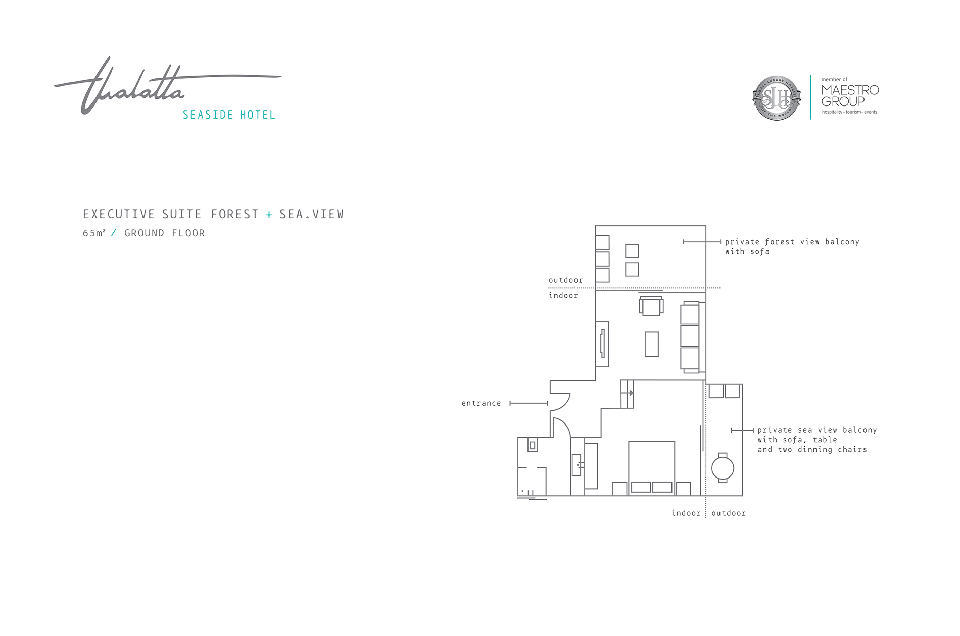 - 2 private sea & forest view balconies with sofa, table and two dinning chairs