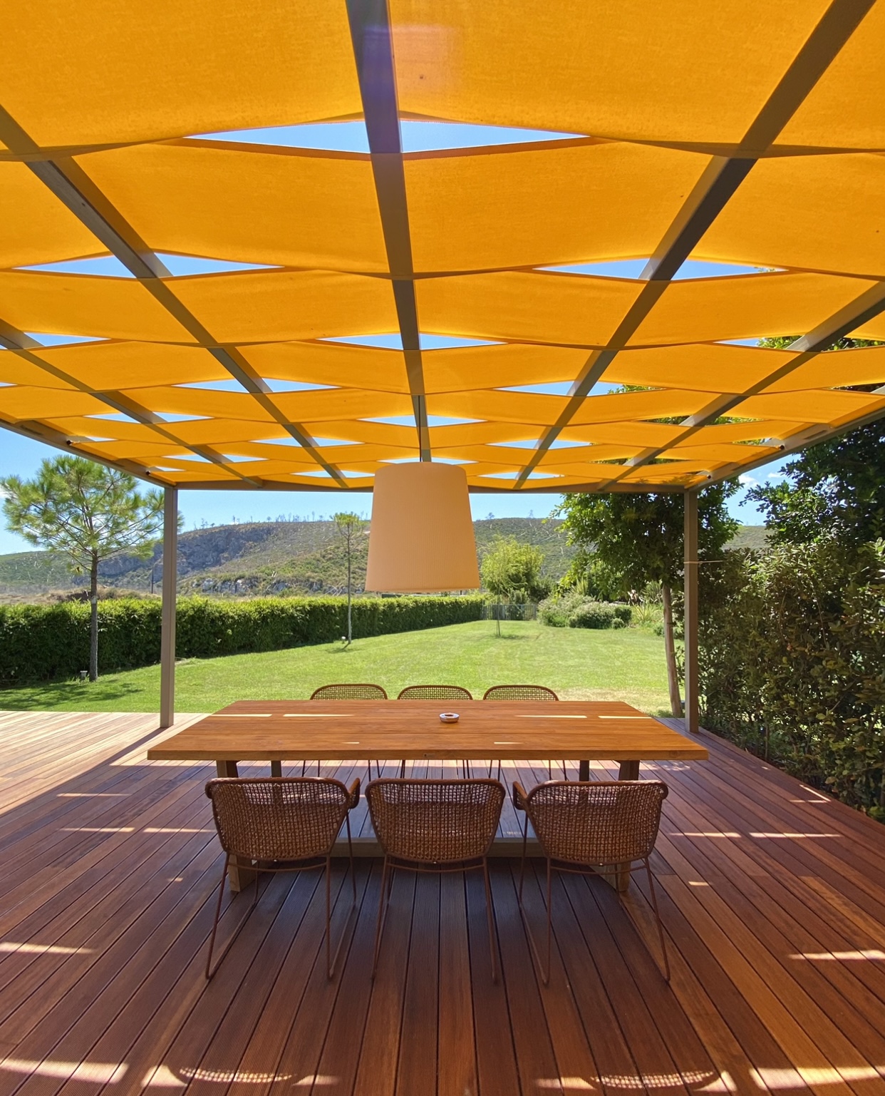 - private patio with sofa, dining table and chairs and sun-beds